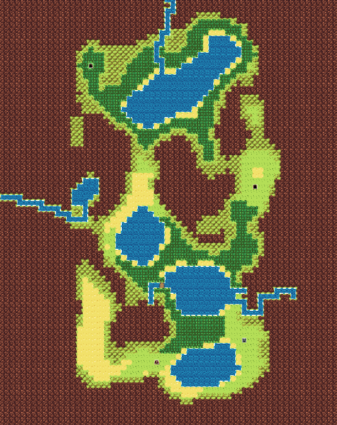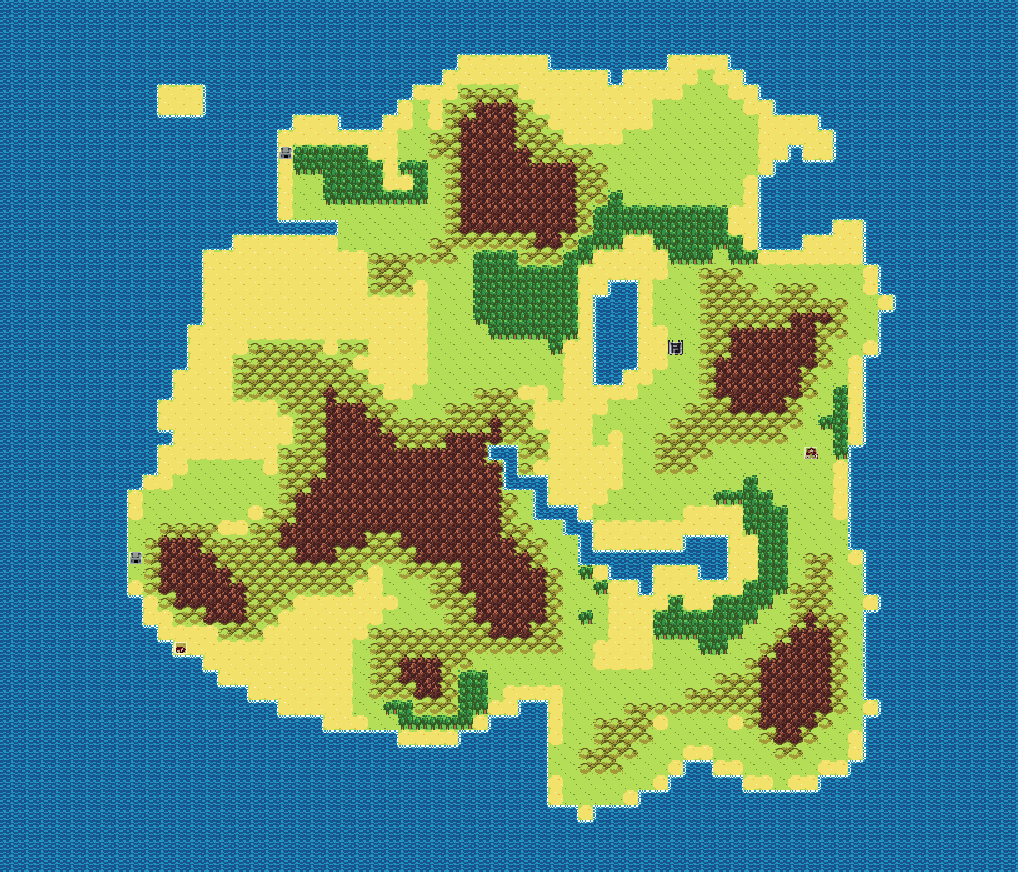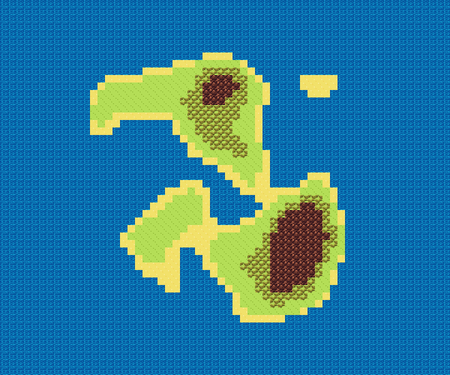 I spent my fifth and sixth development weeks getting the game’s overworld generation in order. After studying others’ prior work in random map generation, I implemented Perlin noise for my game. Then I tweaked the parameters until the results gave me dreams of Alefgard.
